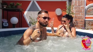 After the anal in the pool, milf drinks sperm from the glass (1st part)