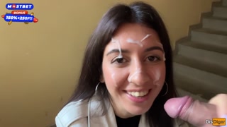 Wife Cheats her Husband in the Entrance and walks on Public with Cum on Face - Cumwalk