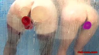 Red and Lucy fuck their toys in the shower
