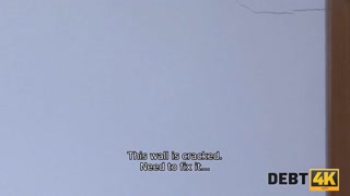 DEBT4k. Hot brunette pays the rent by having sex with the collector