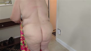 Fat BBW Mature Chubby White milf showing big naked booty ass and boobs close up - SSBBW granny