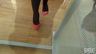 The Sensual Kira Queen gives a perfect Footjob in Stockings