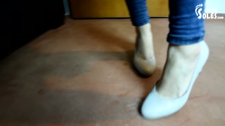 Trying high heels on her sexy feet (foot tease, shoe fetish, big feet, sexy soles, foot goddess)