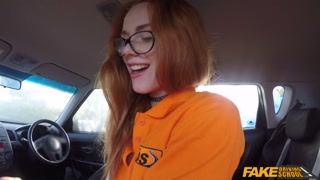 Fake Driving Instructor fucks his cute ginger teen student in the car and gives her a creampie