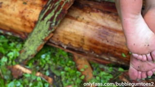 Outdoor Footjob, Shoejob, Blowjob with cum on soles and long toenails