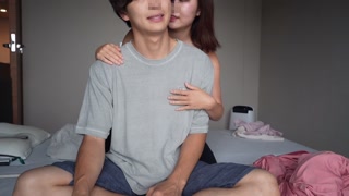 顔面騎乗位でクンニさせながら亀頭責め手コキ、自ら腰振りバックでイケメンM男を寸止め焦らしする痴女の見せつけプレイが最高にエロい。日本人素人/マッチョ/顔騎/クリトリス/巨乳/えむゆみカップル