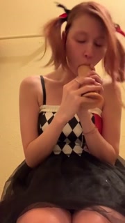 Little slut sucks and fucks big dildo with an ass play ending
