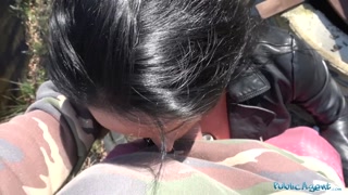Public Agent Peachy ass tight pussy art student swallows thick cumload