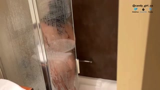 Pervert stepbro spying into sister's shower to shoot a huge sperm load on her face🙈💦