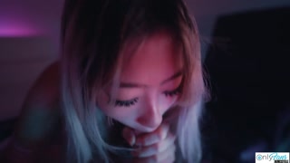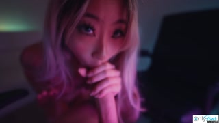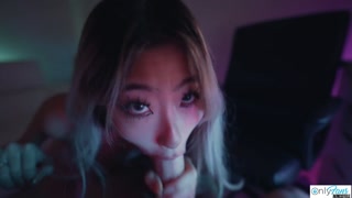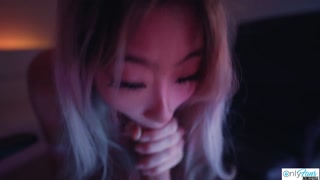 SEXY Asian Teen Raya Steele Massages My Cock With Her Throat!