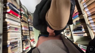 Von Studentin abgeblasen in Lernpause in der Unibibliothek - Riesige Ladung Sperma im Mund