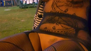 MICRO SHEER DRESS , SITTING WITH OPEN LEGS SHOWING MY PUSSY TO THE DRIVERS