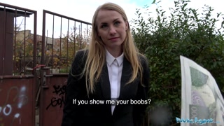 Public Agent Cute Blonde Russian babe fucked through tights at roadside