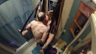 Sex Swing DP action She loves being stretched Milf Creampied