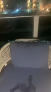 Ebony Teen Squirting on parents hotel room balcony