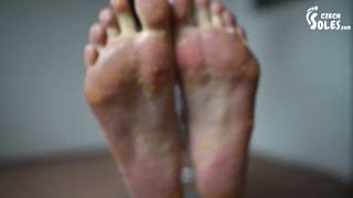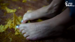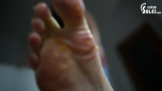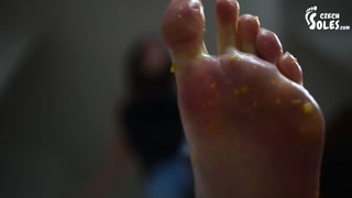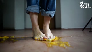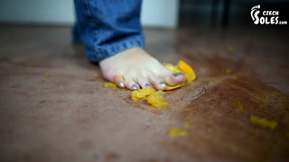 I'll crush fruits and you'll lick it off of my feet! (BIG feet, foot tease, POV foot worship, soles)