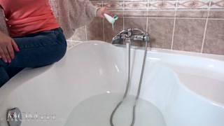 MOMxxx Blonde Russian MILF Dayna Ice bathroom sex and blowjob with skinny lover