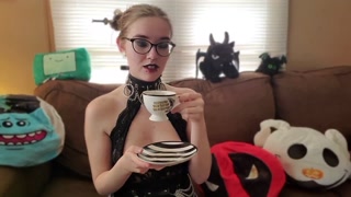 Goth Girl JoI while sipping a cup of tea and smoking - IzzyHellbourne