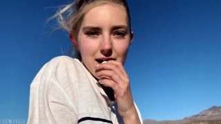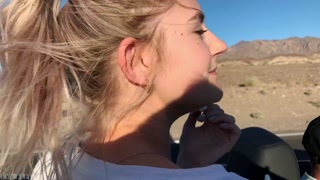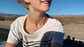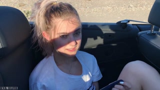Public teen sex in the convertible car on a way to Las Vegas - Eva Elfie