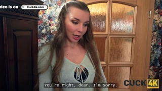 CUCK4K. Tight pussy is taking a stranger's cock because her husband has a small penis