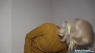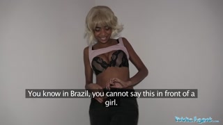 Public Agent Ebony with sexy body blonde hair and shaved pussy