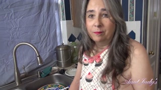 Aunt Judy's - Your Busty Step-Aunt Grace Gives You a Handjob in the Kitchen (POV)