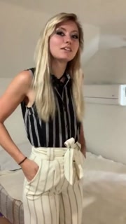 Hot Blonde Strips Out Of Business Casual For Lingerie Tease