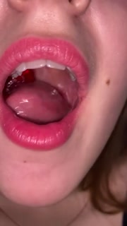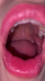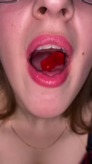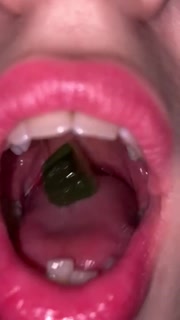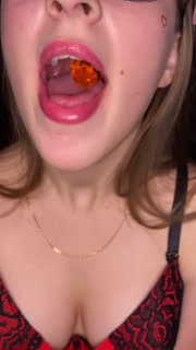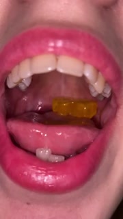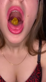 Open mouth gummy swallowing. Underwear