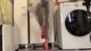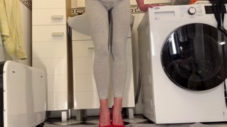 Desperate Pee in My Leggings and Red classic High Heels