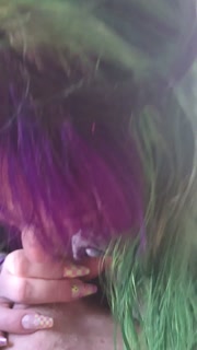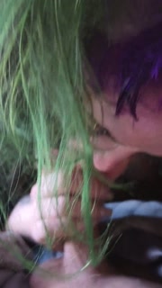 Thick Tattooed Slut with Colored Hair, Caresses Cock with Tongue and Swallows Every Drop