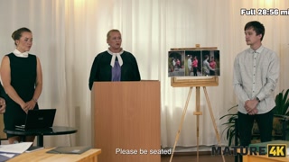 MATURE4K. Mature brunette sucked young cock and her husband secretly saw it