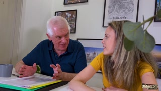Super sexy young blonde has hardcore sex with her older husband and she swallows his cum