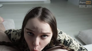 Excited stepsister likes to suck hard cock. Cum in her mouth. Deluxe_Bitch