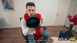 CUCK4K. Russian double penetration threesome organised by a caring husband