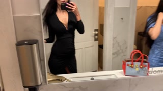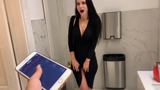 Two girls play with lovense lush in a nightclub(she controls her orgasm)