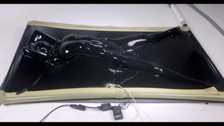 latex vacbed orgasm with vibrator and e-stim