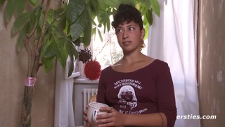A girl with a juicy booty rides a dildo in pantyhose.