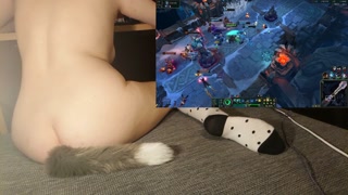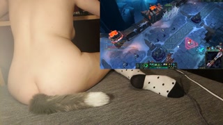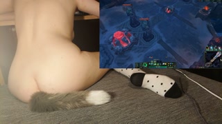 Cute girl with tail and socks riding a vibrator while playing games
