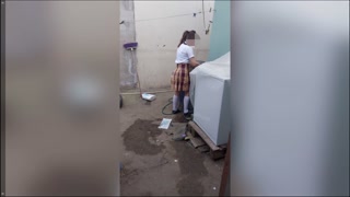 Encuentro a mi hijastra colegiala sola en casa lavando sus calzones, padrastro pervertido ,