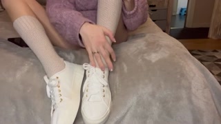 Innocent teen came back from her class and taking care of her gorgeous legs🌸