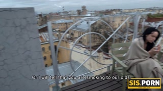 Juicy Leyla enjoys the taste of cigarette smoke and stepbrother's dick
