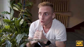 TUTOR4K. Guy brings a cake to married teacher and fucks her at home