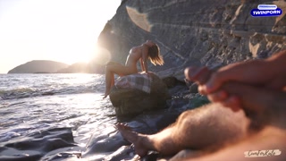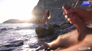 DICK FLASH on a nudist beach: Stranger caught me jerking off and helped me cum