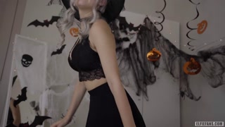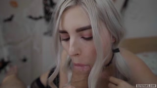 Cute horny witch gets facial and swallows cum - Eva Elfie
