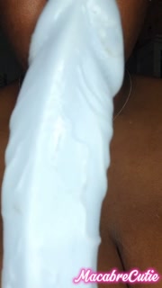 Horny ebony has squirting orgasm and soaks her bunny butt plug from dildo fucking