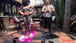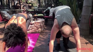 Down Doggy: Black babe doing sweaty nude Yoga and grinding on white interracial boyfriend