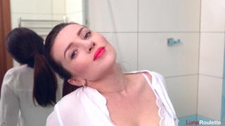 Wife broke pantyhose and had sex in the bathroom / Luna Roulette