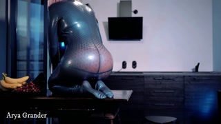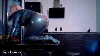 Sexual curvy Arya Grande in latex rubber fetish catsuit