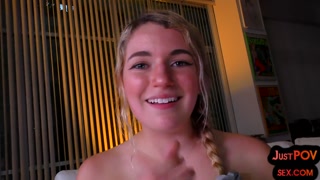 POV teen talks dirty sucks and rides stiff cock of her BF