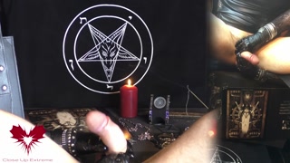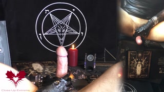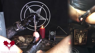 Sperm extraction with a drinking straw. Latex gloves and wristwatch. In the style of WatchesAndNails